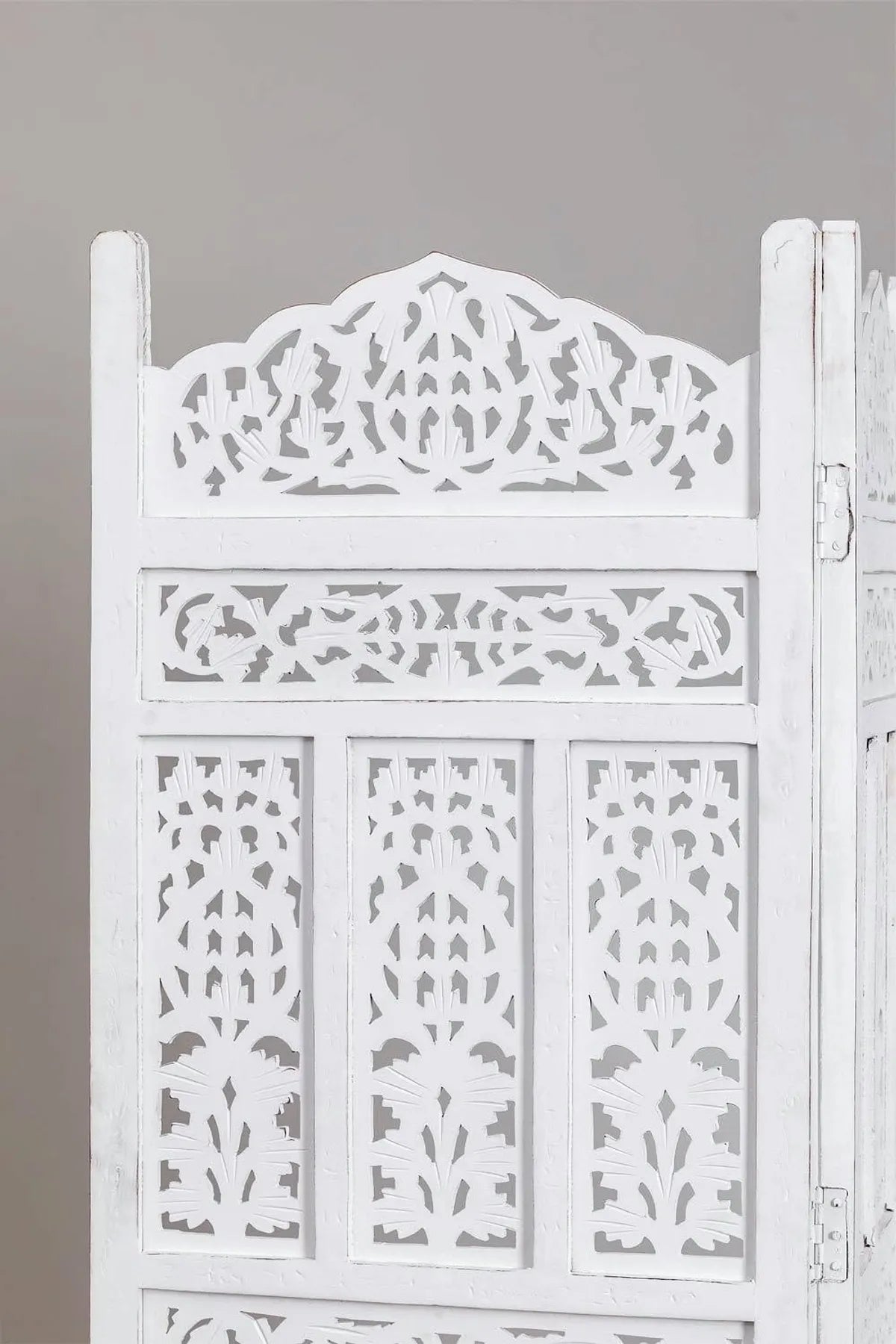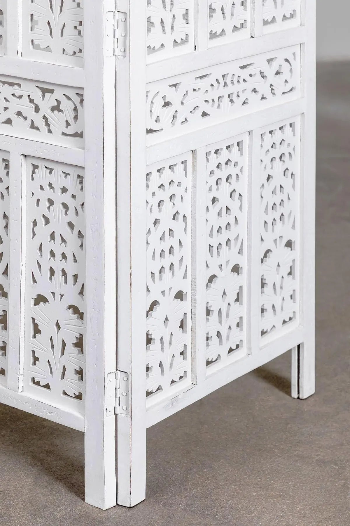 4-Panel White Mango Wood Room Partition – Foldable Privacy Screen Divider