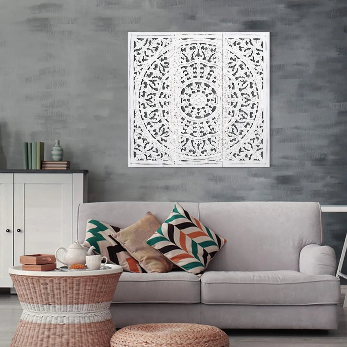 pack of 3 panels - WHF Handmade 36x 36 inches Wooden Wall Panel. with Square Shape in White Color