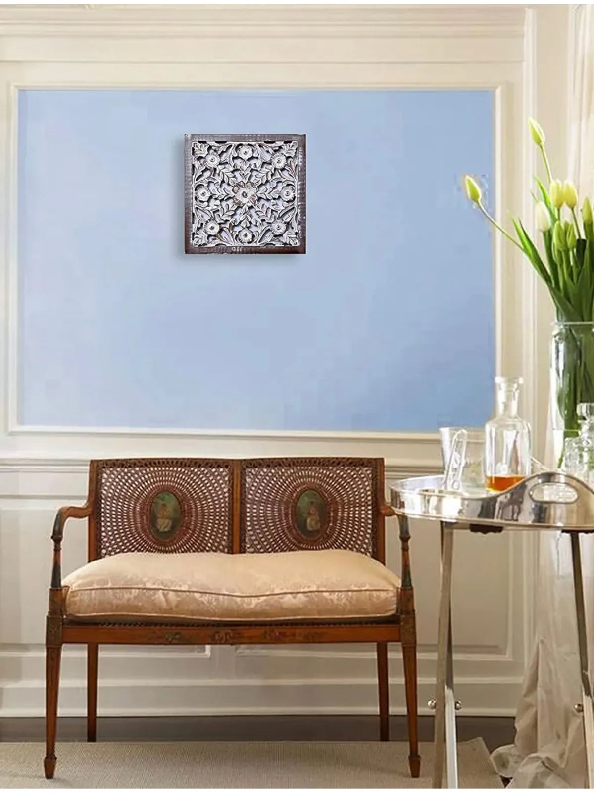 Set of 2 - Wall Hanging Panel | Wooden Wall Decorative Frame for Living Room | MDF Wall Decor Wooden Frame for Home,16x16 inches, White wash