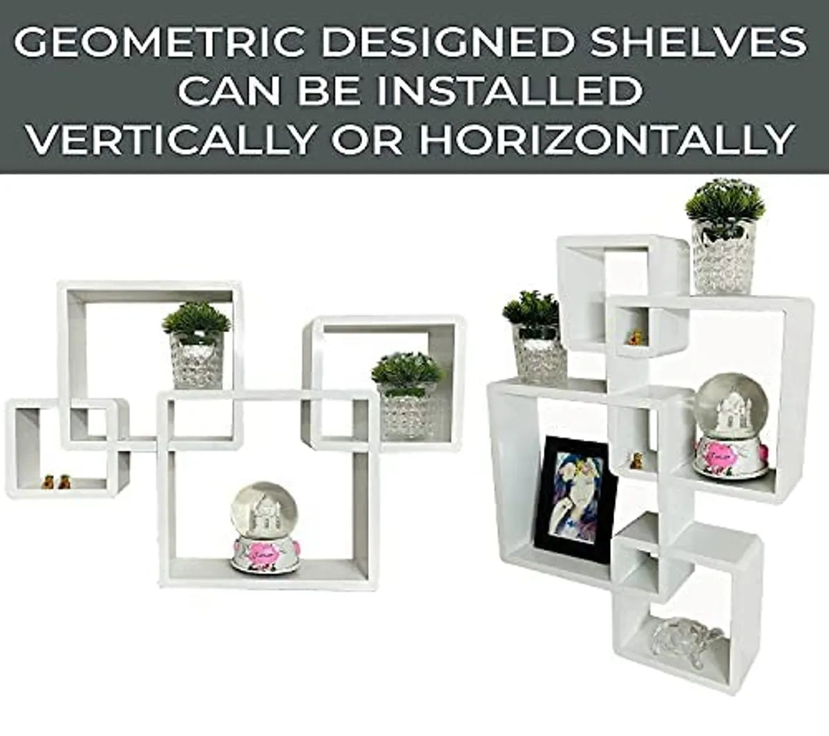 Intersecting Floating Wall Mounted Shelf Storage Shelves Kitchen Shelves Wall Decoration for Living Room Stylish Wall Rack Wooden Book Shelves Home Decor_Set of 4 (Color-White) Material Engineered Wood ,Product Dimensions 48.5D x 45W x 9H Centimeters